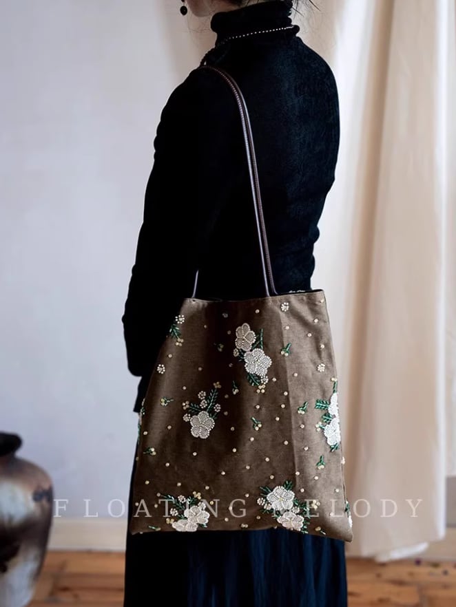 貝殻ヴィンテージ刺繍ビーズスマホバッグ