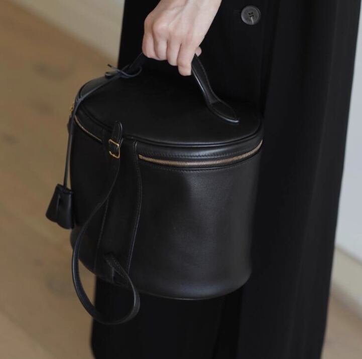 円筒形ハンドバッグは、ユニークなデザインと柔らかなPUレザーが魅力。