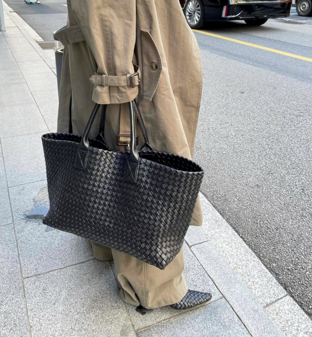 ぬくもりを感じる編み込みトートバッグ。