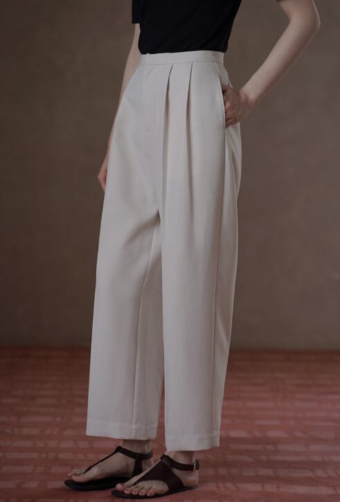 ハイウエストとテーパードシルエットが、自然にスタイルアップを叶える一本。