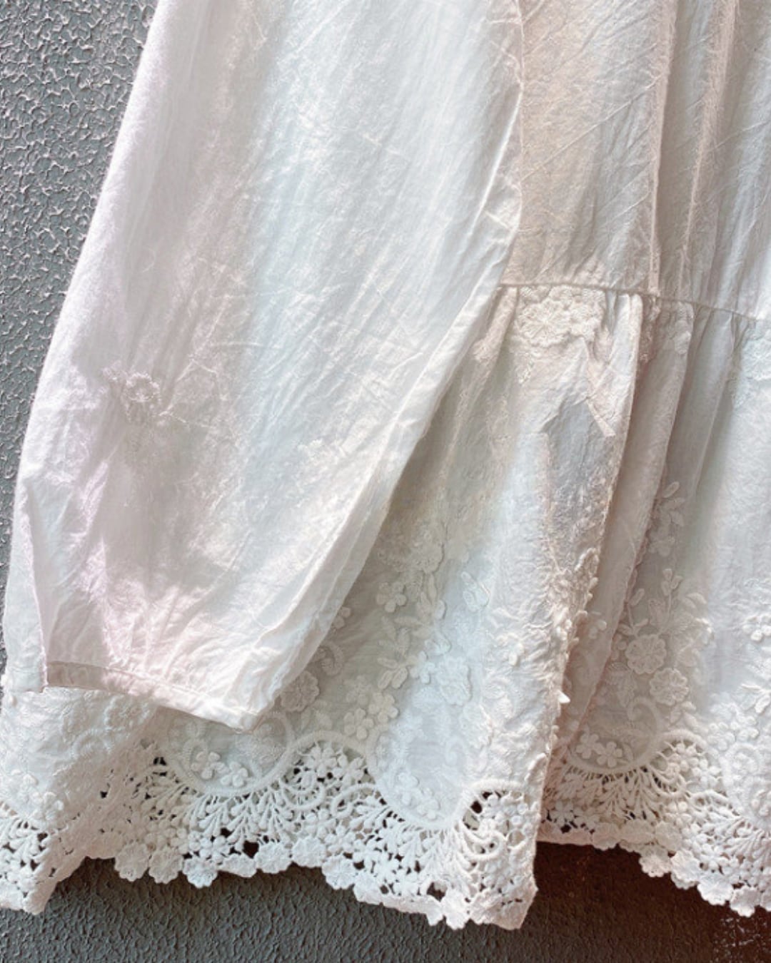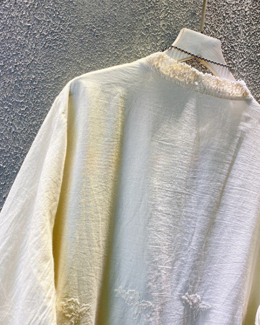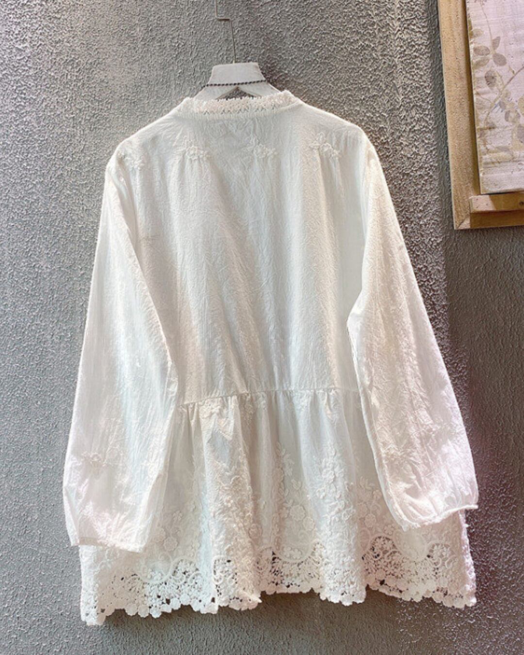 刺繍透かしコットンリネン素材ブラウス