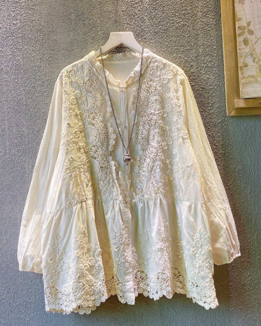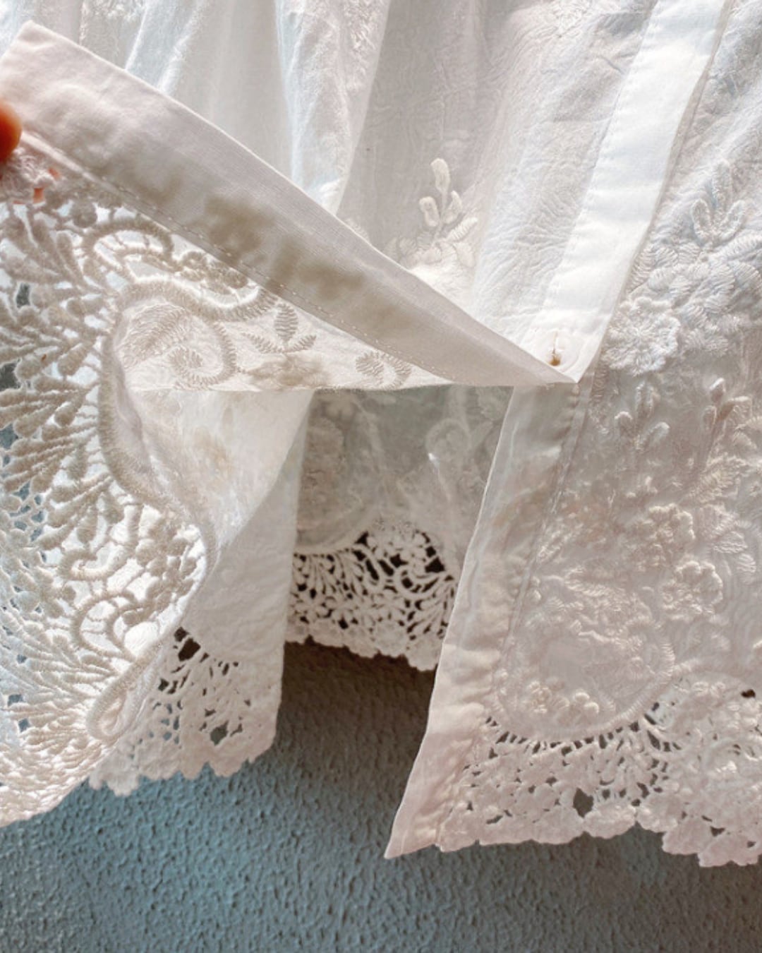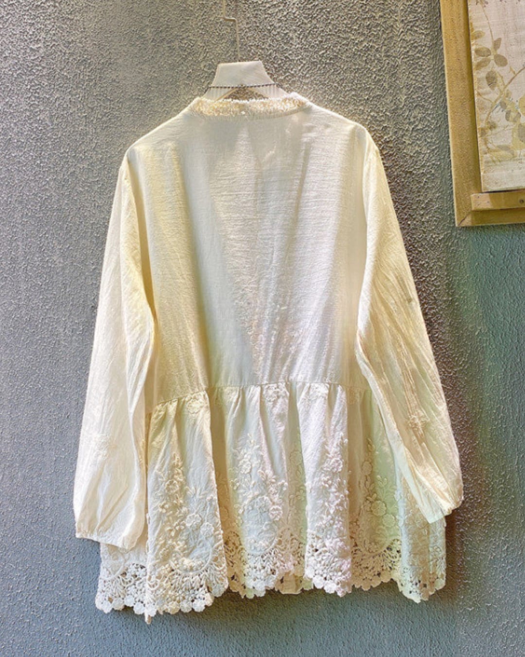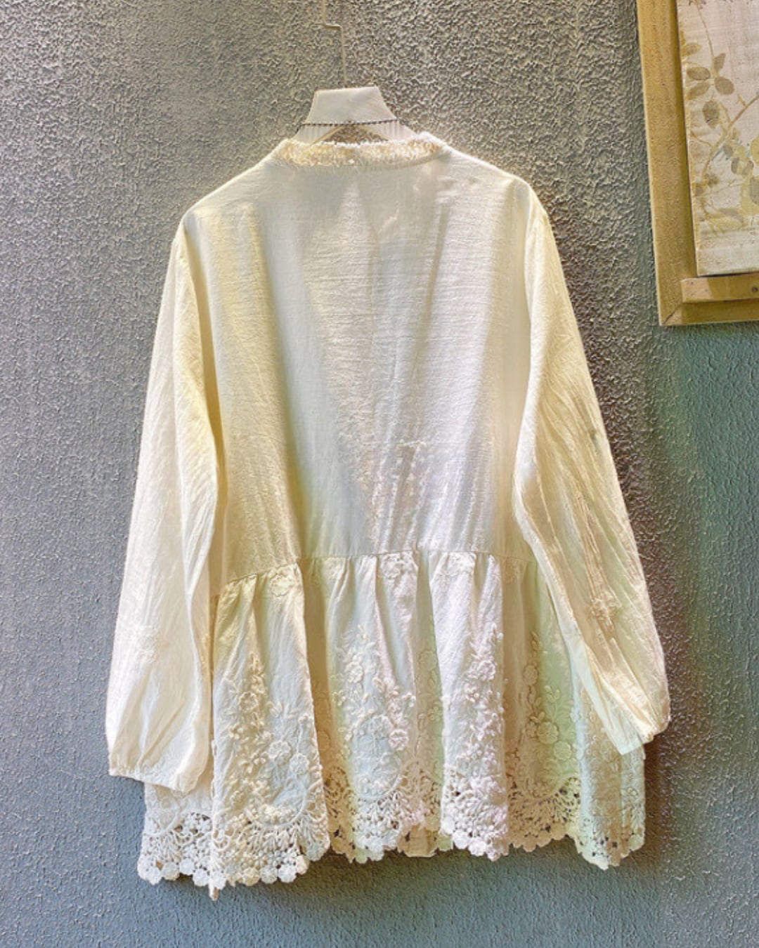 刺繍透かしコットンリネン素材ブラウス