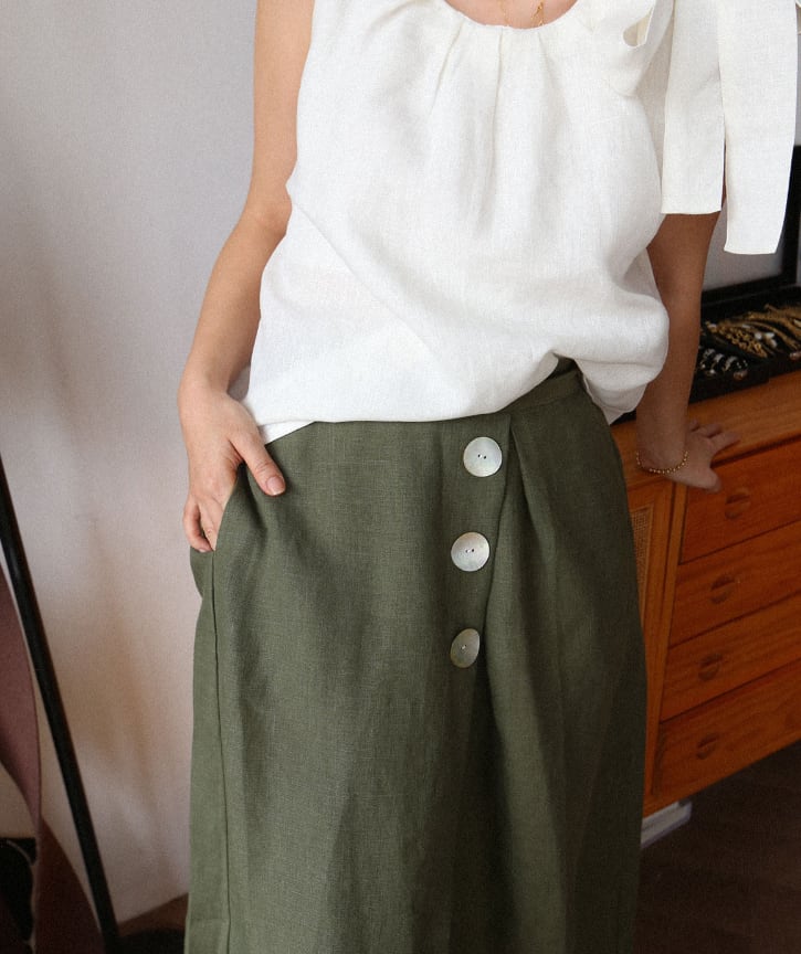 【サイズ】 項目 S M L スカート丈 71 73 75 ウエスト(平置き) 66 70 74 ウエスト(伸縮時) 96 100 105 ※手作業での採寸のため、多少の誤差が生じる場合があります。あらかじめご了承ください。 【カラー】 カーキ、アイボリー 【素材】 100% 麻(ヘンプ) 【原産国】 中国 【商品特徴】 「素材の魅力をまとう、心地よい毎日に。」 麻ならではの風合いを生かしたアシンメトリースカートは、軽やかで通気性もよく、春夏に心地よく寄り添う一枚。動きのあるシルエットがさりげない個性を演出し、シンプルなトップスと合わせるだけで洗練された印象に。ウエストはゴム仕様で、リラックス感のある着心地も魅力。自然体のおしゃれを楽しめる、Cotiらしいスカートです。 【Cotiのこだわり】 Cotiでは「上質で、気負わず着られる日常服」をテーマに、 海外工場から直接セレクトを行っています。 必要以上の中間コストを省くことで、 品質に対して手に取りやすい価格を実現しています。 【お届けについて】 こちらの商品は海外提携工場より直接発送となります。 ご入金から 2〜3週間前後 を目安にお届けいたします。 ◼️注意事項 海外製品のため、稀に在庫が急変する場合がございます。 その際は心苦しいのですが、ご注文をキャンセルさせていただく場合がございます。 あらかじめご了承くださいませ。 ・日本製とは検品基準が異なるため、 新品でもわずかな糸のほつれ・小さな傷などが見られる場合がございます。 ・商品写真はできる限り実物に近づけておりますが、 お使いのスマートフォン・モニター設定により色味が若干異なる場合がございます。 ・「イメージ違い」「サイズ違い」など お客様都合での返品・交換はお受けしておりません。 サイズや素材についてご不安があれば、お気軽にご相談ください。 ———————————— ご購入前にこちらをお読みください →https://sumauie.base.shop/about ————————————