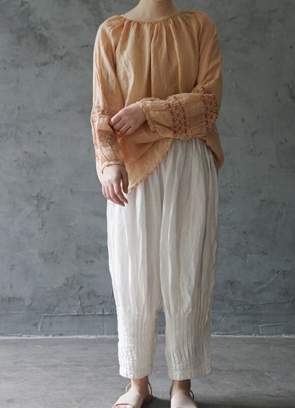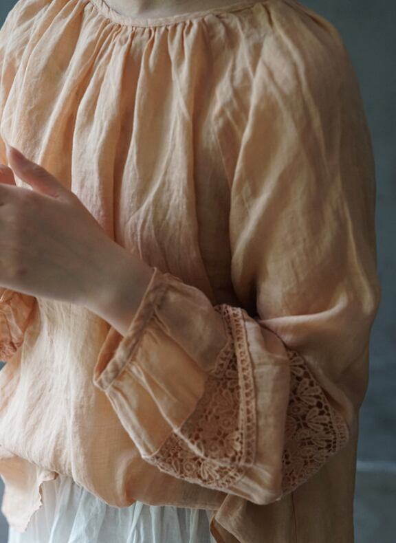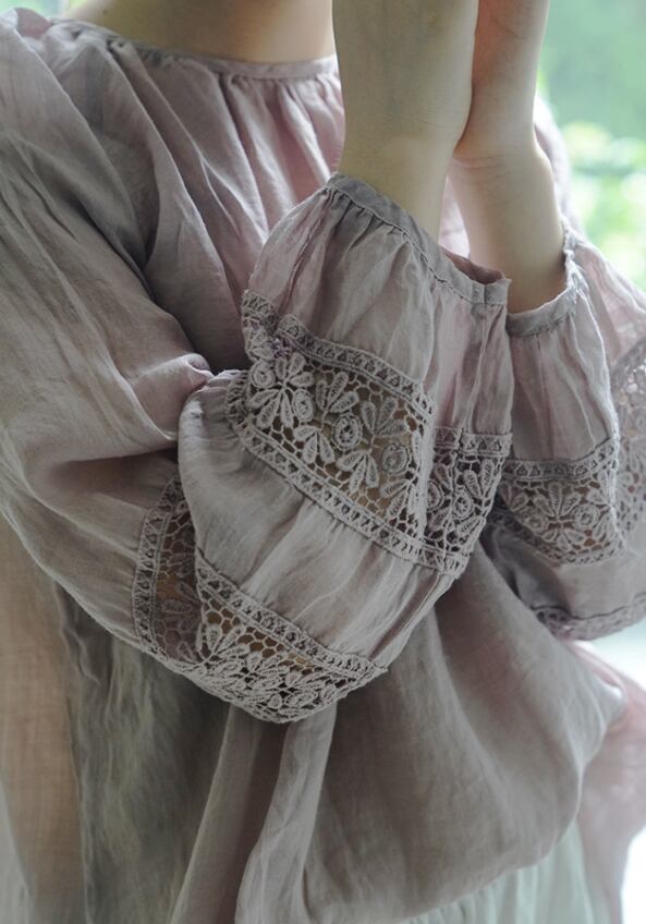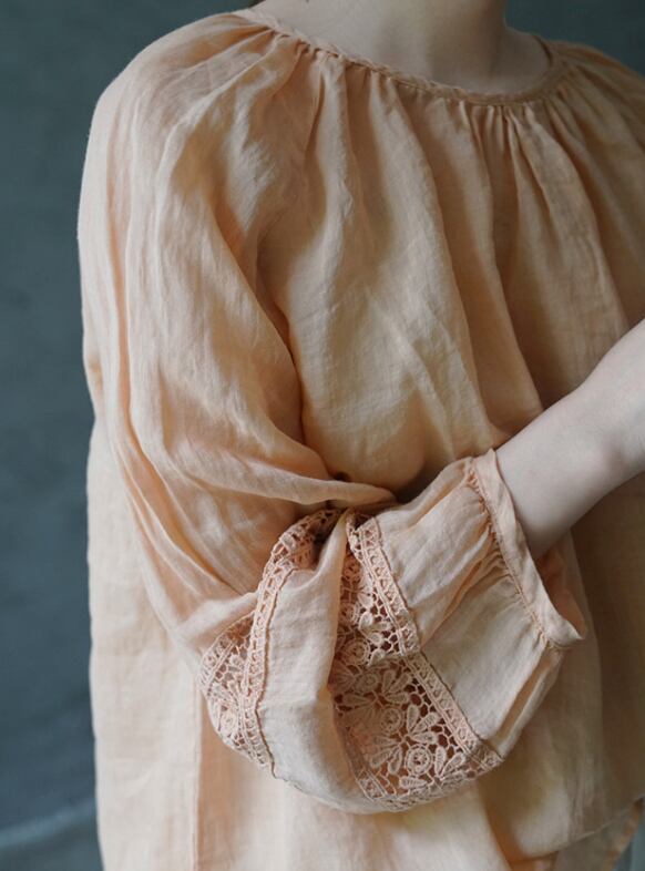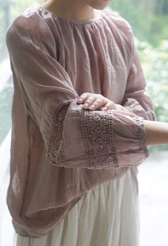 軽やかさと上品さを兼ね備えた、麻素材のパフスリーブブラウス。