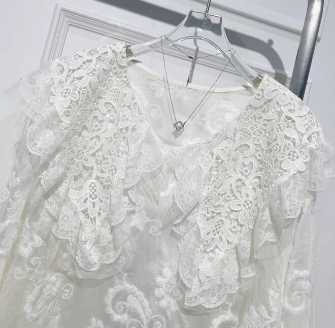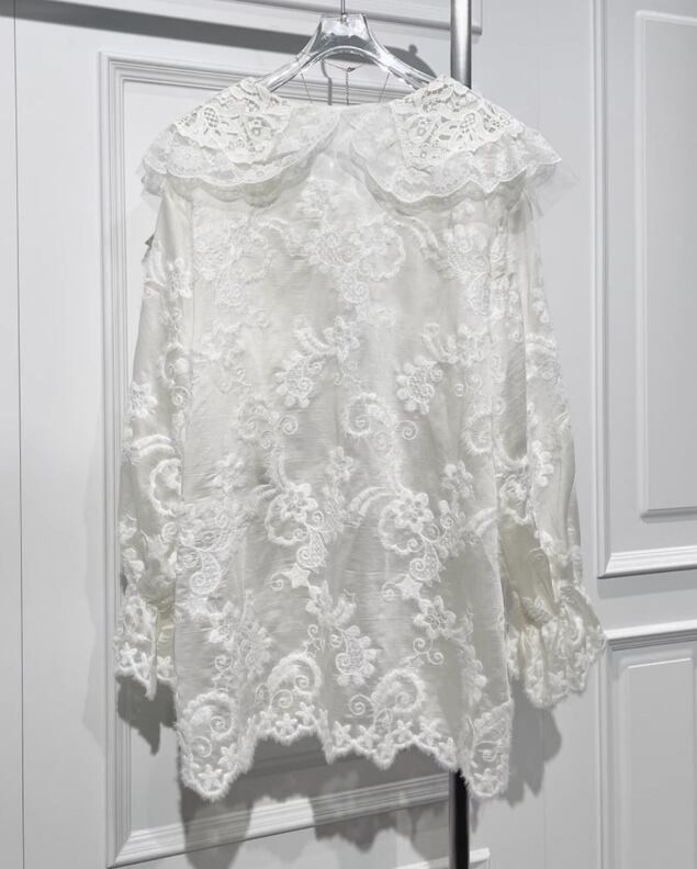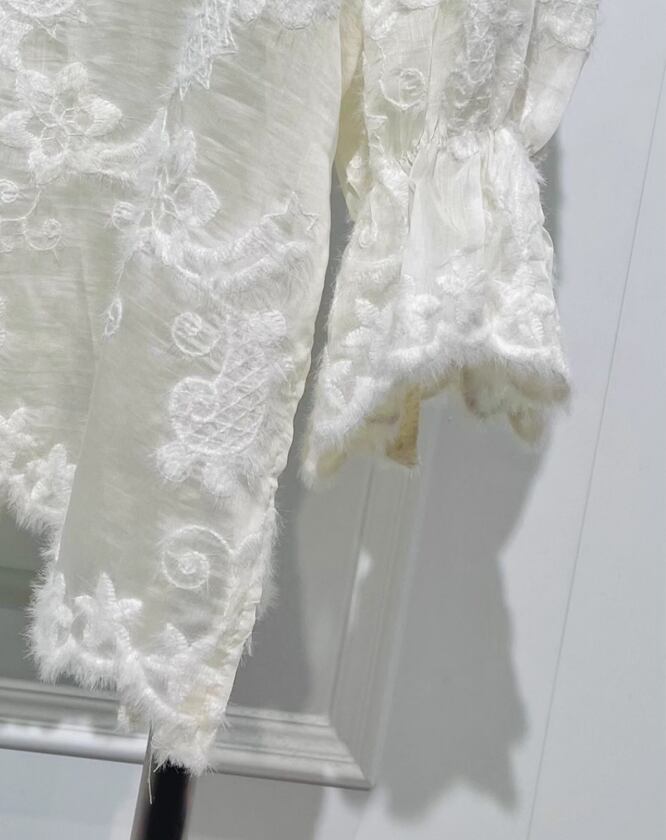 繊細な刺繍が美しく映える、シルク素材の上質ブラウス。