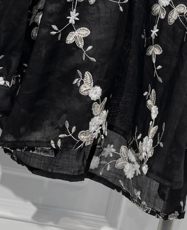 刺繍花柄長袖ブラウス