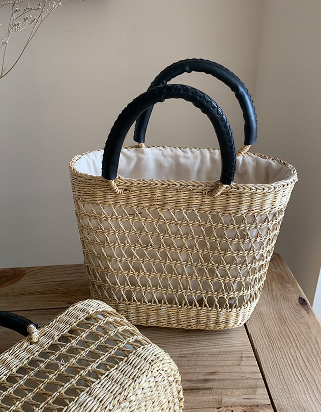 透かし編みの繊細な表情が魅力の、Cotiらしい黄草バッグ。