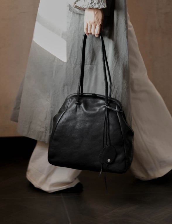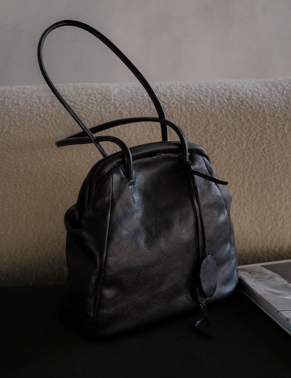 無駄のない美しさが際立つ、Cotiらしいブラッククリップバッグ。
