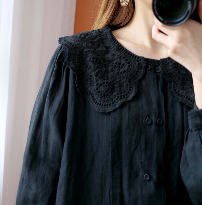花柄レース襟が印象的なトップスは、Cotiらしい上品さと愛らしさを兼ね備えた一枚です。