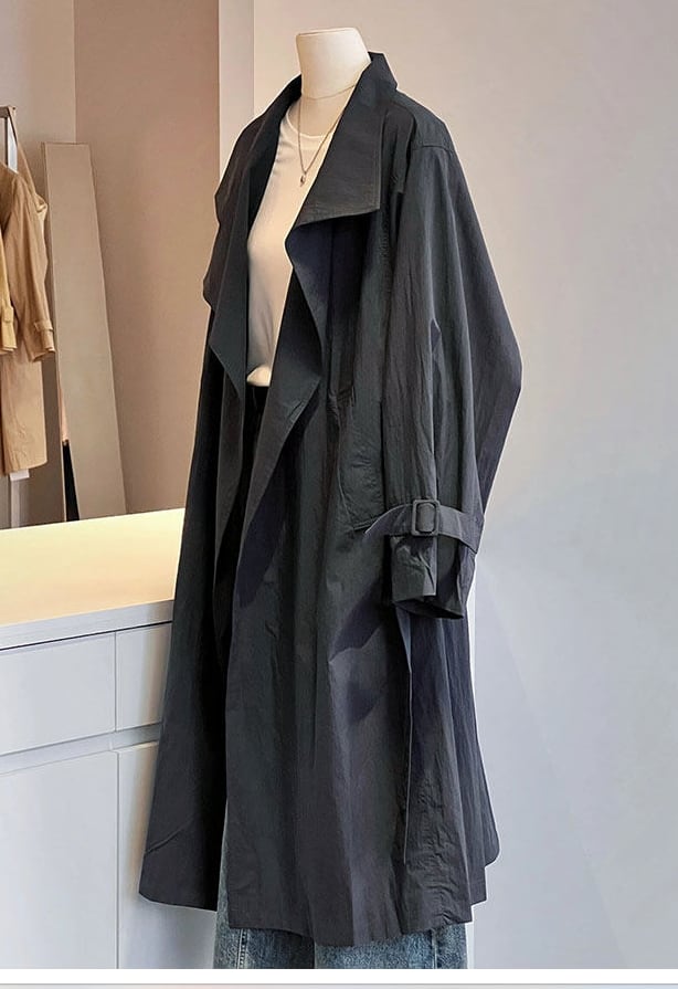 フレンチ風リネンロングトレンチコートは、大人の魅力をやさしく引き立てる一枚です。