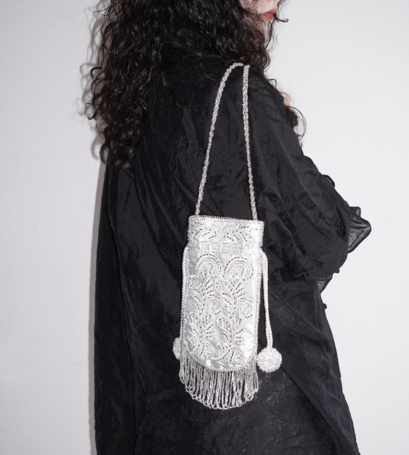貝殻ヴィンテージ刺繍ビーズスマホバッグ