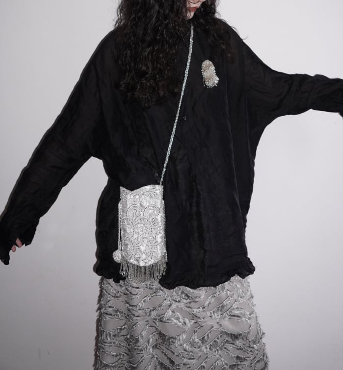 貝殻とビーズ刺繍がやさしくきらめく、上品なスマホバッグ。