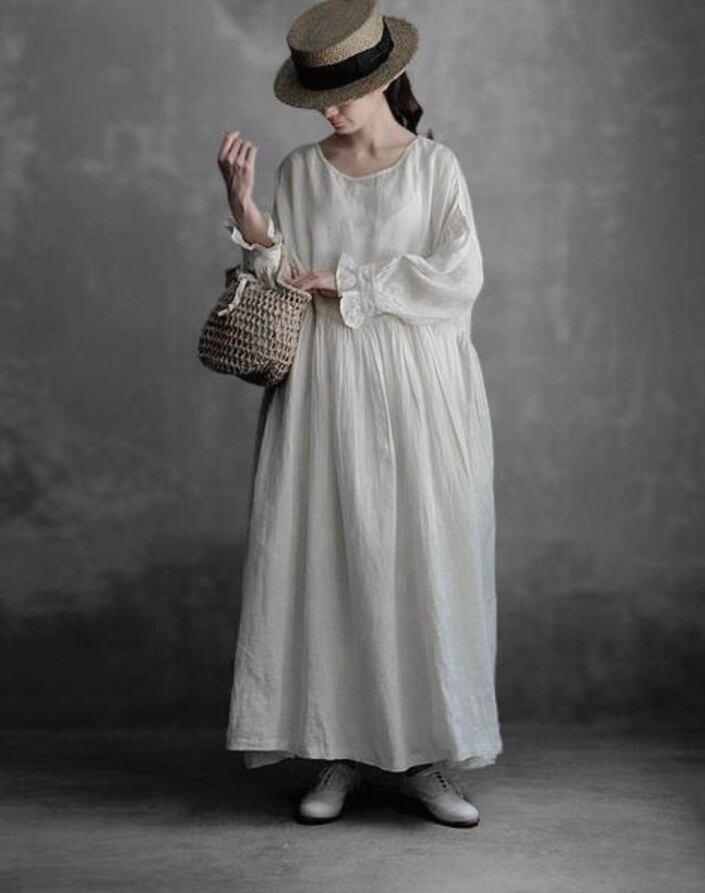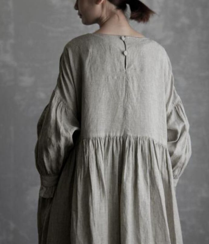 やさしい自然の空気を纏う、フリル付きハイウエストリネンワンピース。
