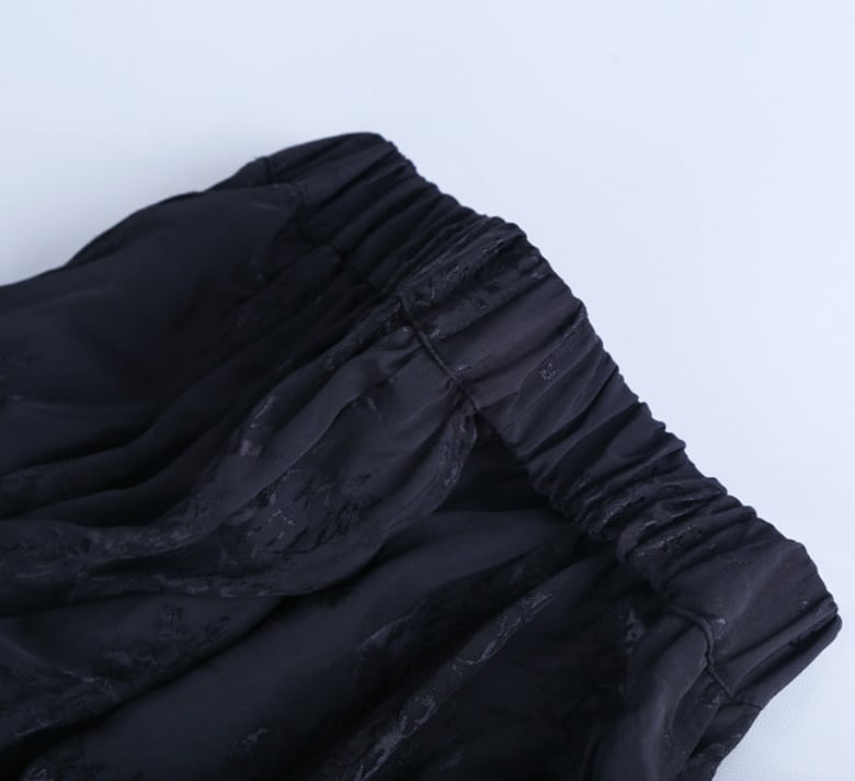 高級感あふれる超ゆったりスタイルのブラックリネンジャカードワイドパンツ。独特のジャカード生地が、シンプルながら洗練された印象を持たせ、リラックスした雰囲気を演出します。柔らかく軽やかな素材感が魅力で、気軽に着られつつも、上品さを兼ね備えた一品です。デイリールックから特別なシーンまで、様々なスタイルに柔軟に対応します。