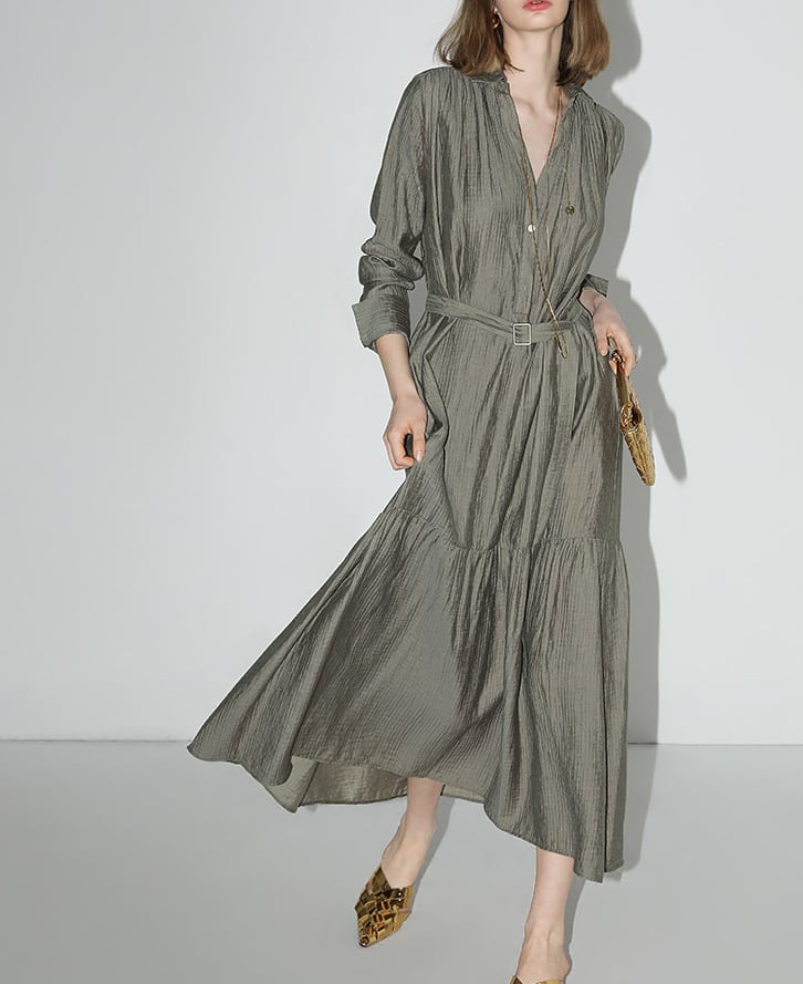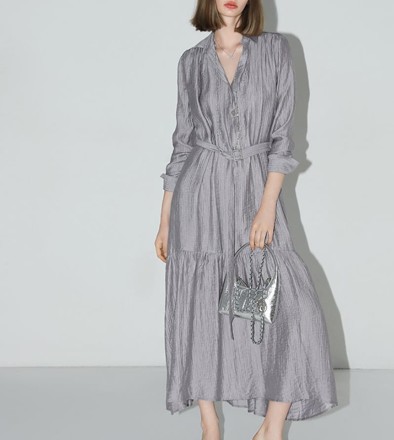 エレガントなプリーツデザインが魅力のワンピース。優れたドレープ感が美しく、立体的なシルエットを作り出します。デイリー使いはもちろん、パーティーや特別なシーンにもぴったり!着るだけでスタイリッシュな印象を与える一品です。