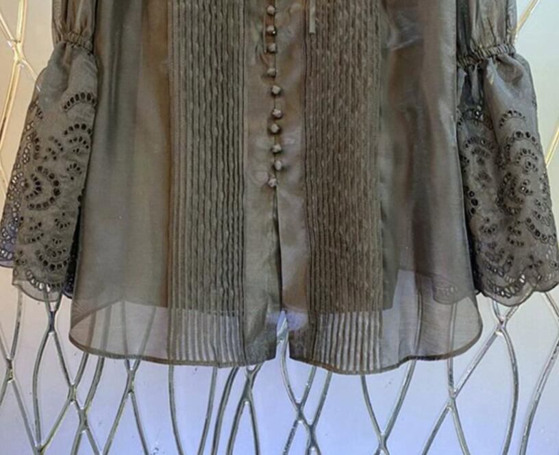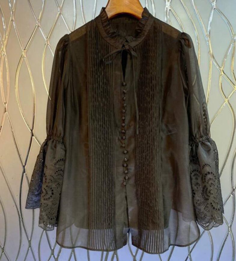 オードリー・ヘップバーンを思わせる、優雅なベルスリーブブラウス。