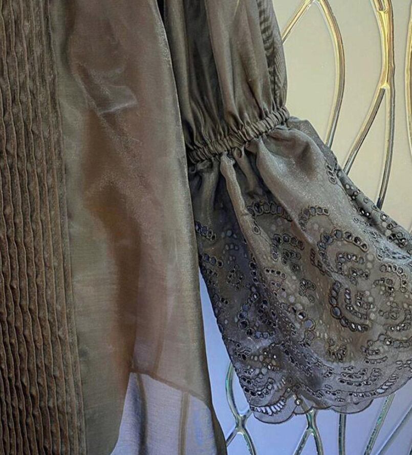 上品なブラックで、大人の装いに静かな華やぎを添える一枚です。