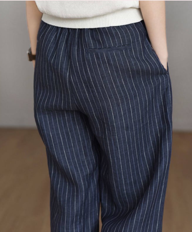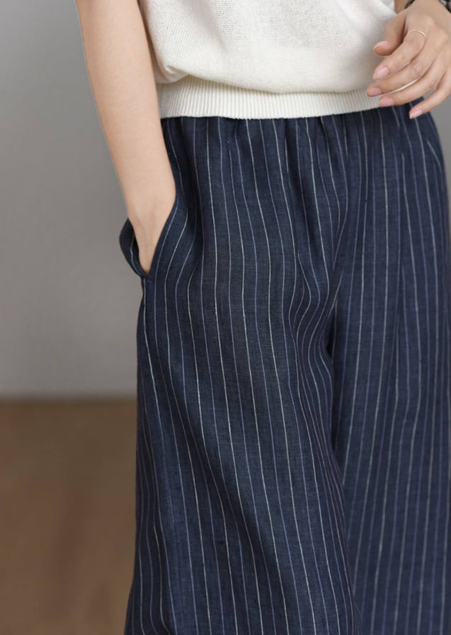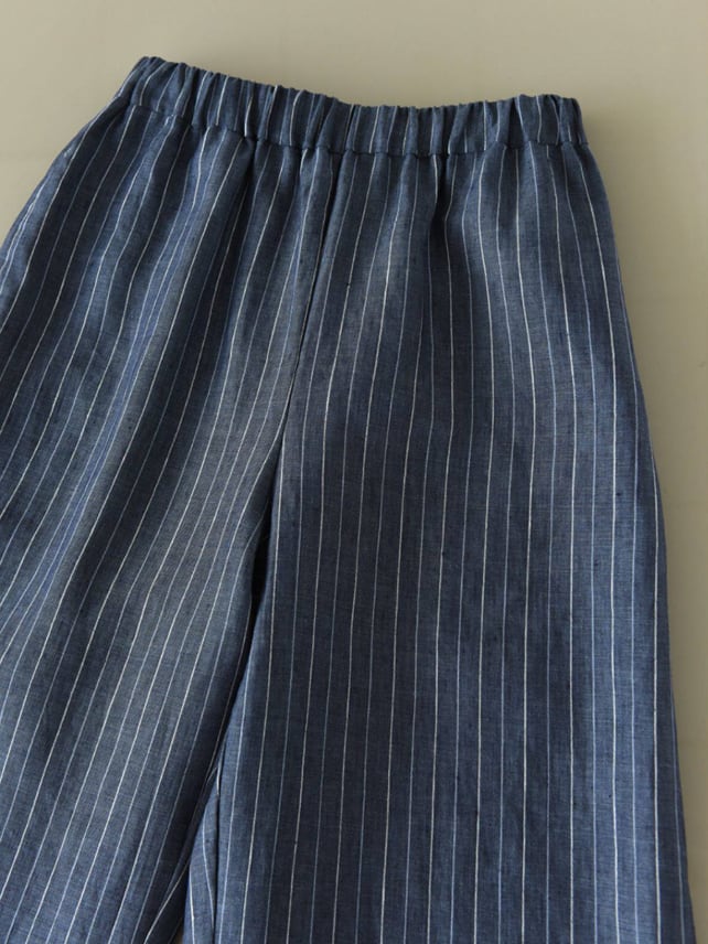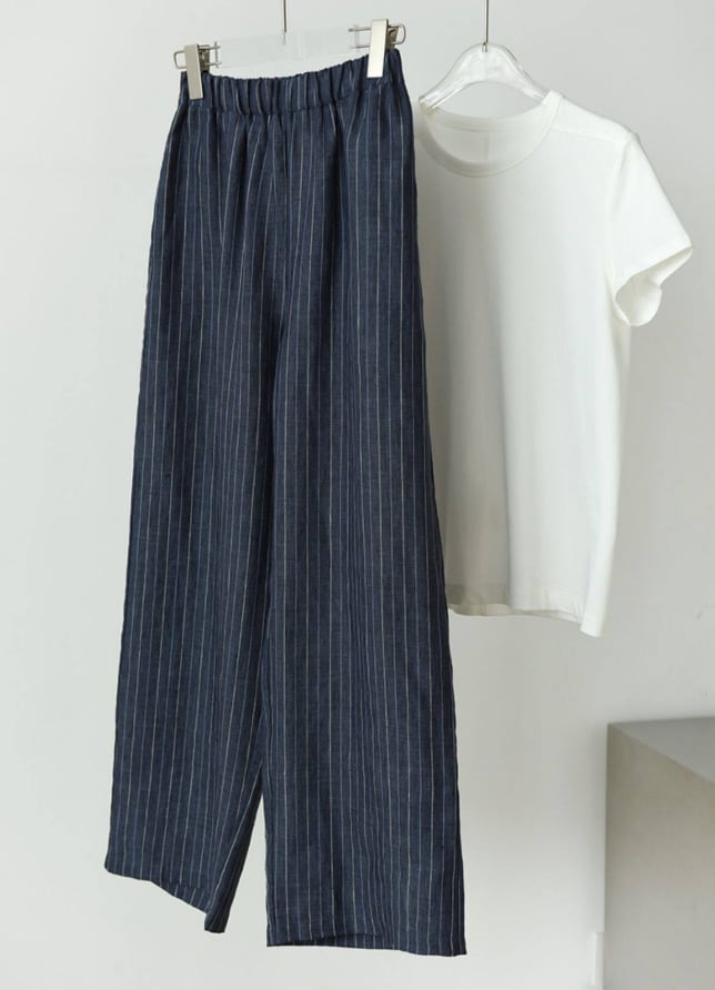 フランスリネン ストライプワイドパンツ