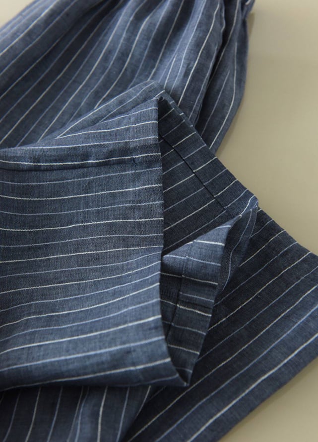 フランスリネンを使用した、軽やかなストライプワイドパンツ。