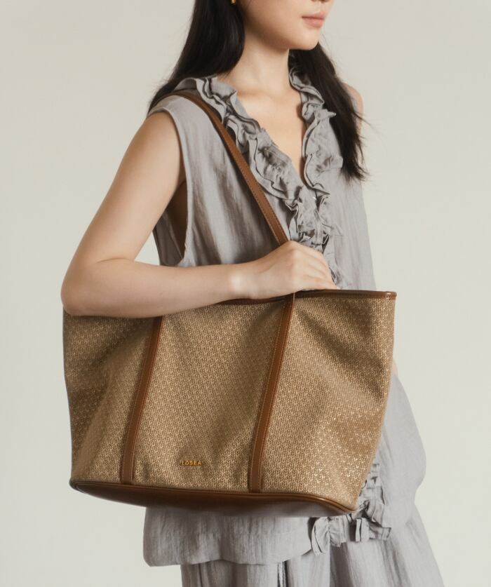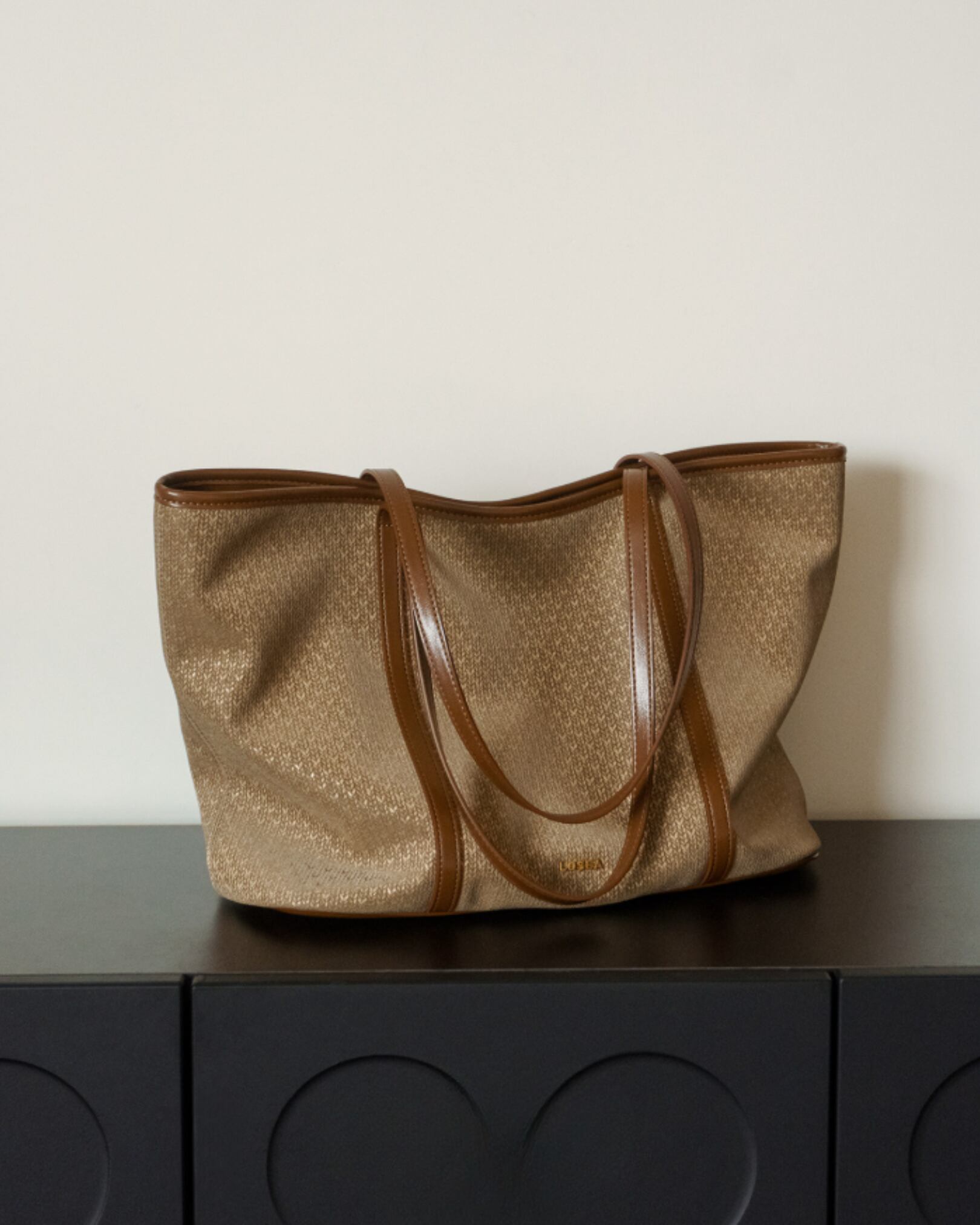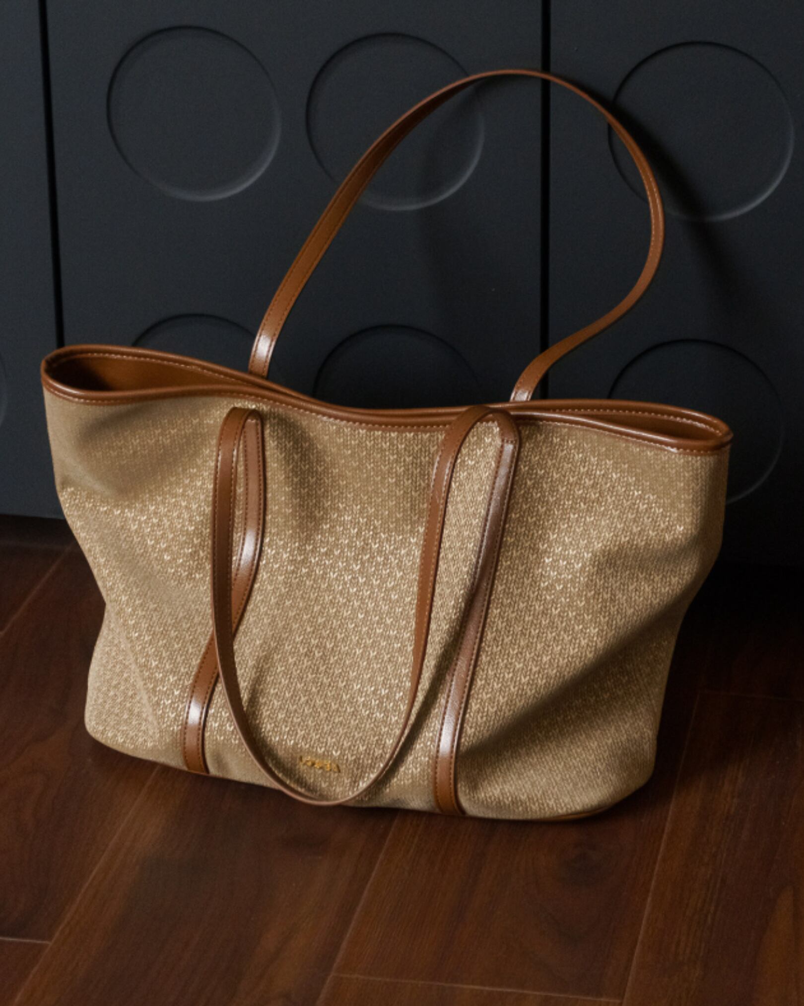 大容量の編み込みデザインが特徴のトートバッグは、スタイリッシュで実用的なアイテムです。確かな収納力を備え、普段使いやお仕事、ショッピングなど、あらゆるシーンで大活躍。柔らかなキャンバス素材を使用しているため、持ちやすく、肩掛けも楽々。シンプルながらもデザイン性に優れており、カジュアルコーデにぴったりのアクセントを加えます。