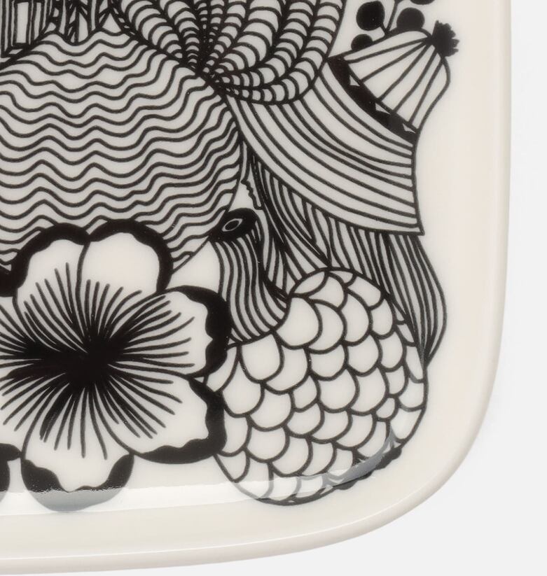 ボタニカルなモチーフをエネルギッシュに描いた、Siirtolapuutarha柄のスクエアプレートです。友人を招いたティータイムに、ケーキやスコーンを載せて振舞うと喜ばれそう。コンパクトで収納もしやすくなっています。