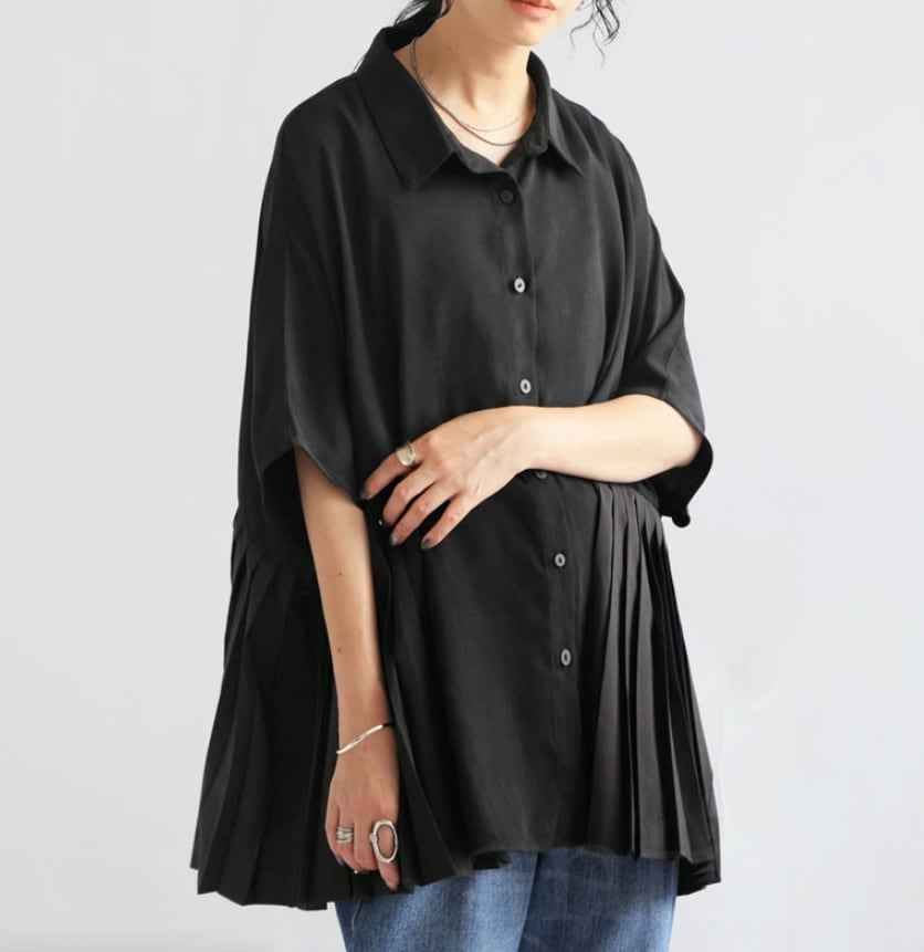 シングルボタン プリーツシャツ