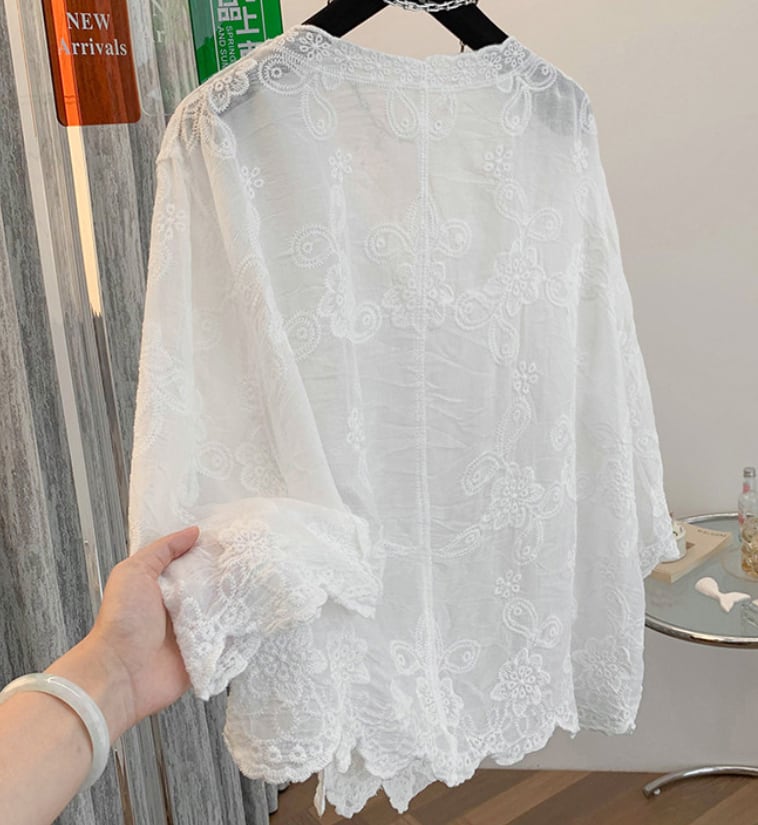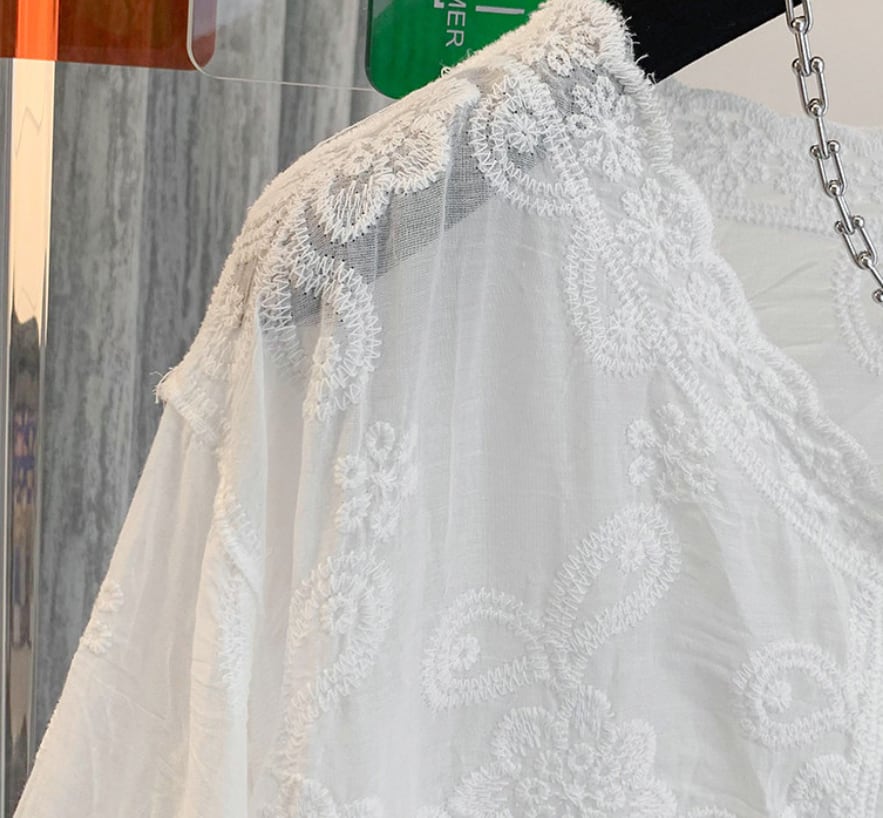 【サイズ】 M:〜50kg(日本S〜M) L:50〜60kg(日本M〜L) XL:60〜70kg(日本L〜XL) 2XL:70〜80kg(日本XL〜2L) 3XL:80〜90kg(日本2L〜3L) 4XL:90〜100kg(日本3L〜4L) 【カラー】 ホワイト ※透け感あり サイズはゆったりとした設計で、 幅広い体型の方にご着用いただけます。 M〜4XLまでご用意しており、 大きめサイズも安心してお選びいただけます。 【素材】 軽やかなシフォン素材(ポリエステル) 【原産国】 中国 【商品特徴】 「フレンチレース刺繍入りVネックトップス」は、上品なフレンチレース刺繍が施されており、シンプルなデザインに華やかさをプラスしています。Vネックラインはデコルテを美しく見せ、女性らしい印象を与えます。軽やかな素材感は、通気性が良く、夏でも快適に着用できるのが魅力です。また、ゆったりめのシルエットがリラックス感を演出し、カジュアルなデイリースタイルからちょっとしたお出かけまで幅広く活躍します。 薄手なので下に白のキャミソールおすすめです! 【Cotiのこだわり】 Cotiでは、品質とデザインにこだわり、 大人の女性にふさわしいアイテムを厳選しています。 日常に自然と馴染みながら、 上品さを引き立てる一着をお届けします。 海外工場から直接セレクトを行っており、 必要以上の中間コストを省くことで、 品質に対して手に取りやすい価格を実現しています。 【お届けについて】 こちらの商品は海外提携工場より直接発送となります。 ご入金から 2〜3週間前後 を目安にお届けいたします。 ◼️注意事項 海外製品のため、稀に在庫が急変する場合がございます。 その際は心苦しいのですが、ご注文をキャンセルさせていただく場合がございます。 あらかじめご了承くださいませ。 ・日本製とは検品基準が異なるため、 新品でもわずかな糸のほつれ・小さな傷などが見られる場合がございます。 ・商品写真はできる限り実物に近づけておりますが、 お使いのスマートフォン・モニター設定により色味が若干異なる場合がございます。 ・「イメージ違い」「サイズ違い」など お客様都合での返品・交換はお受けしておりません。 サイズや素材についてご不安があれば、お気軽にご相談ください。 ———————————— ご購入前にこちらをお読みください →https://sumauie.base.shop/about ————————————