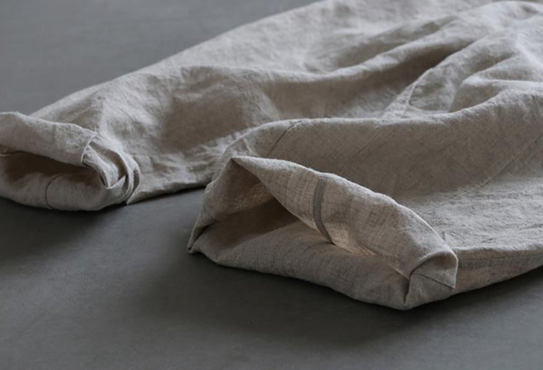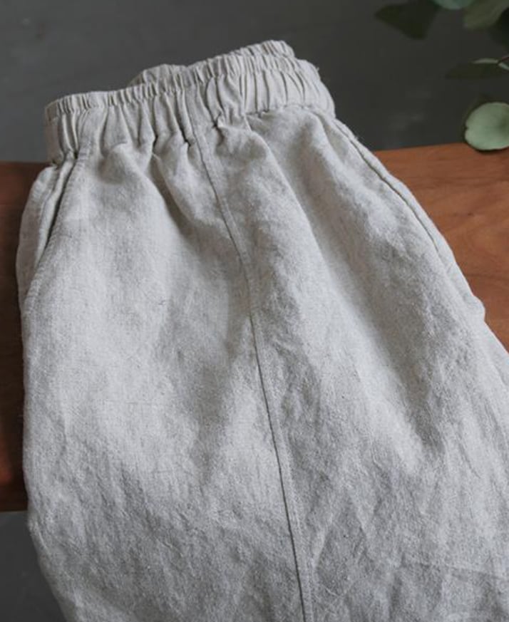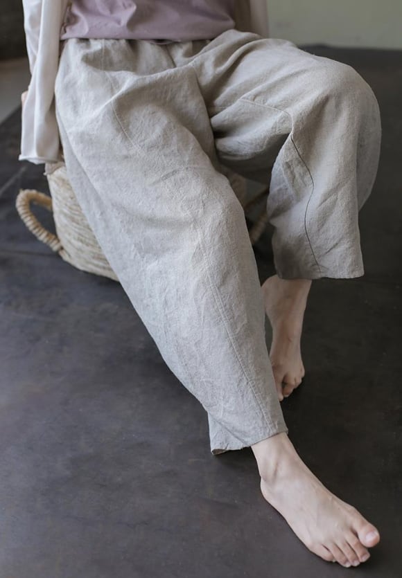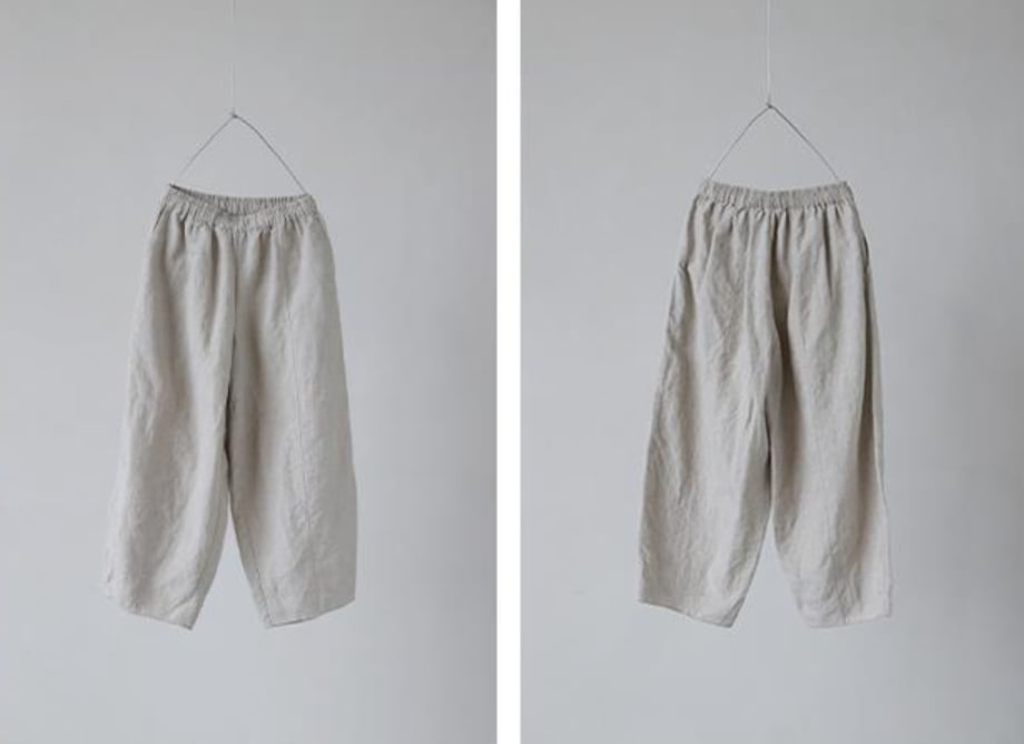 ゆったりシルエットで体型をカバーするリネンパンツ