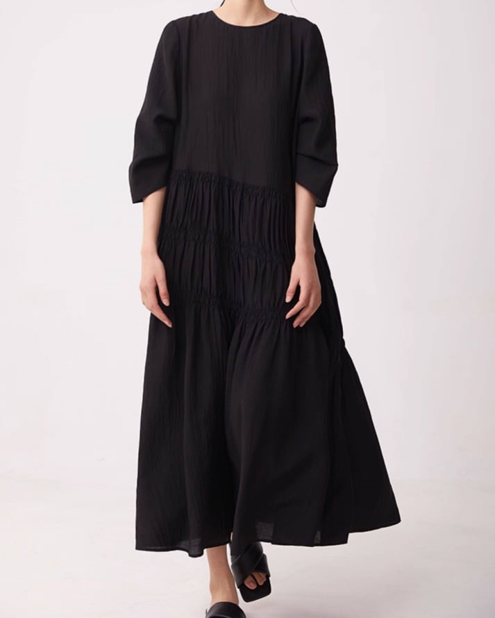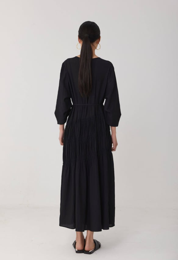 体のラインを拾わず、リラックスしながらも上品な印象に。
