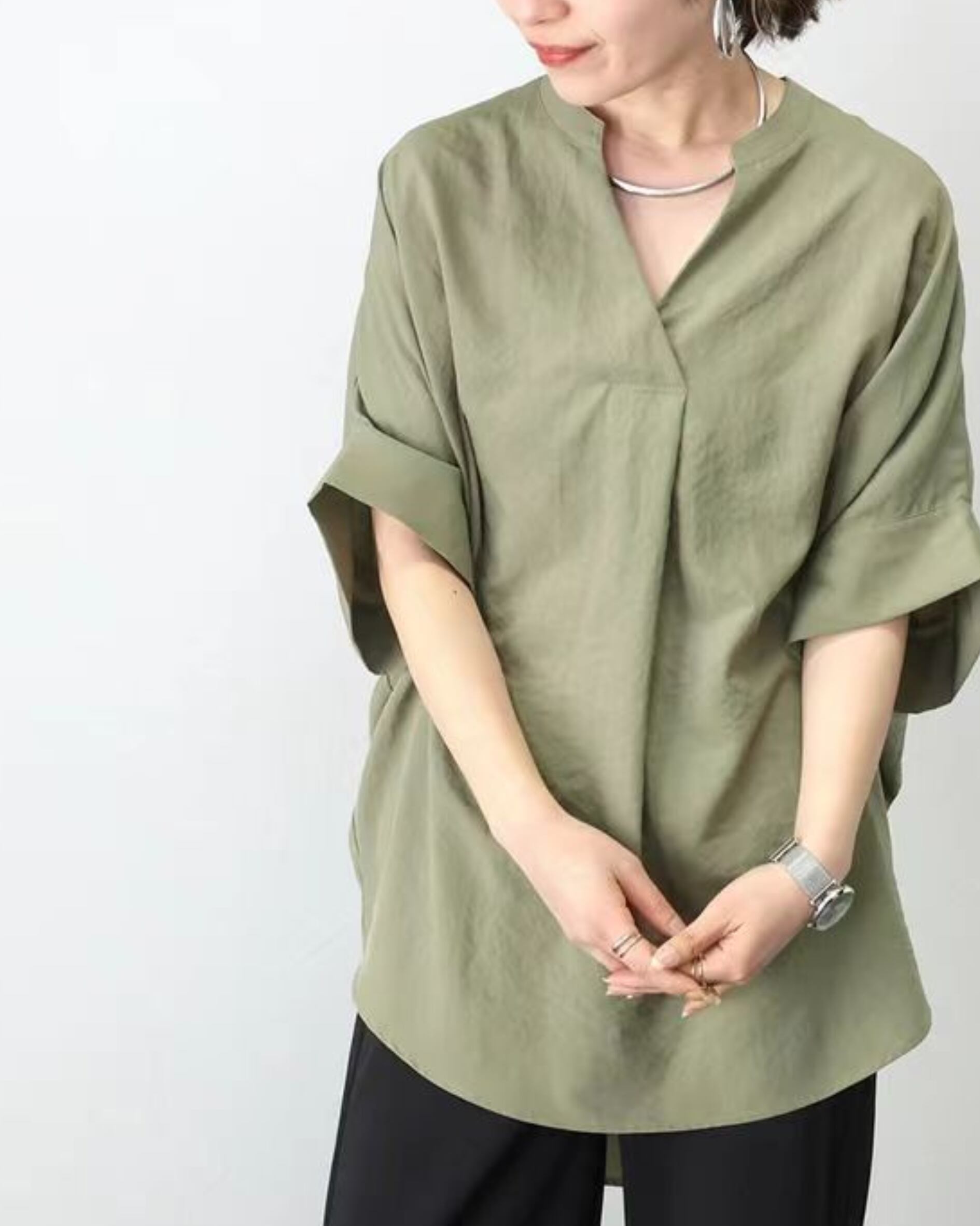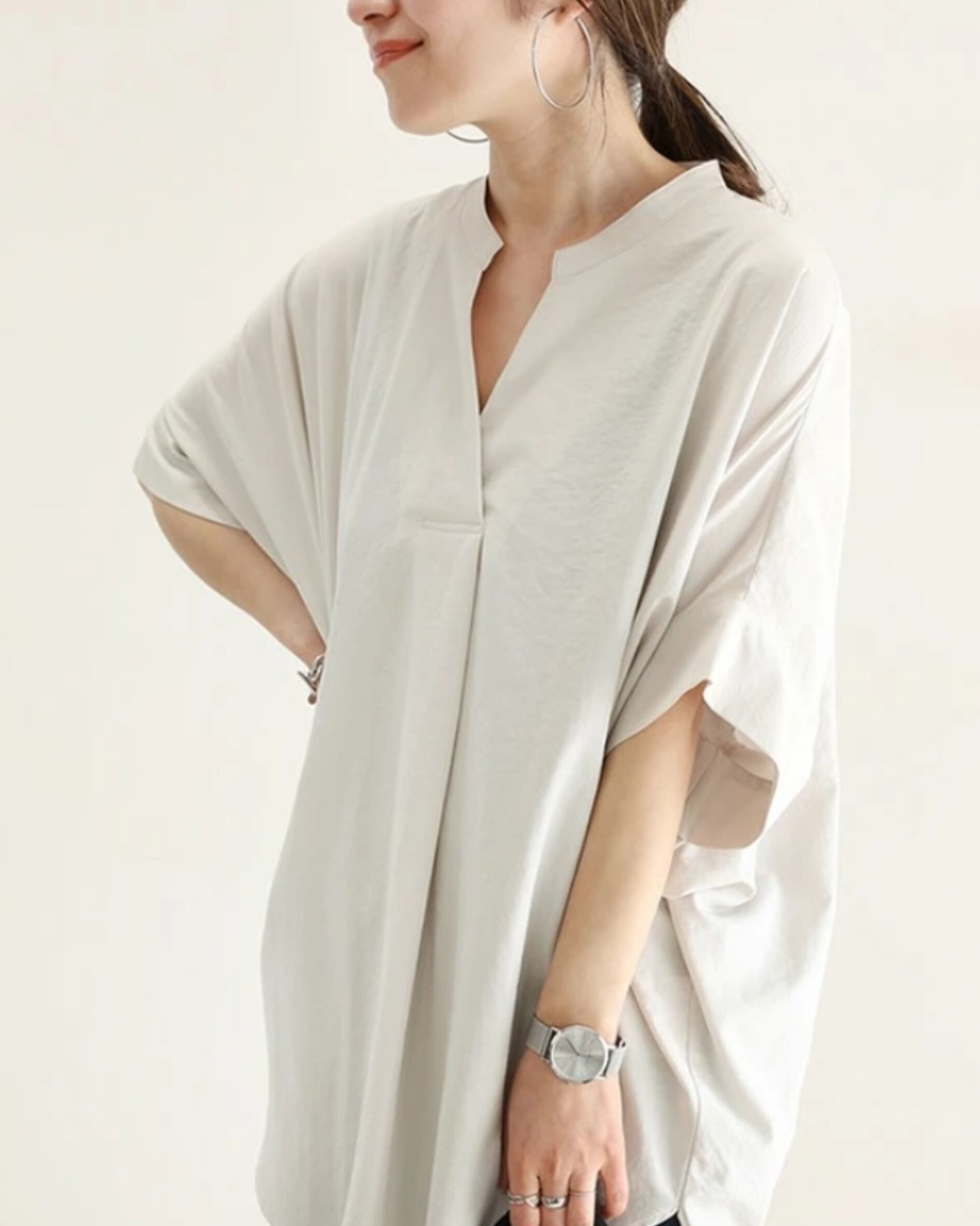 【サイズ(cm)】 サイズ:フリーサイズ(cm) ・着丈:73 ・胸囲:146 ・袖丈:29 ・肩幅:46 ※平置き採寸のため、1〜3cm程度の誤差が生じる場合がございます。 【カラー】 ホワイト ブラック アプリコット ネイビーブルー アーミーグリーン ブラウン グレー 【素材】 主素材:綿(コットン)+ポリエステル 混率:80〜90%(綿メイン) オーバーサイズ設計で、普段M〜XLの方まで着用可能 ヒップが隠れる丈感で体型カバーにも◎ 袖は肘にかかるほどの長さで、気になる二の腕も自然にカバー 【原産国】 中国 【商品特徴】 軽やかで、心地よく整う一枚。 ナチュラルな風合いとゆったりとしたシルエットが、 大人の余裕を感じさせるVネックブラウスです。 通気性の良いコットン混素材で、暑い季節も快適に。 抜け感のあるデザインで、シンプルながら洗練された印象に仕上がります。 自然体でいられる、大人のための一着です。 【Cotiのこだわり】 Cotiでは、品質とデザインにこだわり、 大人の女性にふさわしいアイテムを厳選しています。 日常に自然と馴染みながら、 上品さを引き立てる一着をお届けします。 海外工場から直接セレクトを行っており、 必要以上の中間コストを省くことで、 品質に対して手に取りやすい価格を実現しています。 【お届けについて】 こちらの商品は海外提携工場より直接発送となります。 ご入金から 2〜3週間前後 を目安にお届けいたします。 ◼️注意事項 海外製品のため、稀に在庫が急変する場合がございます。 その際は心苦しいのですが、ご注文をキャンセルさせていただく場合がございます。 あらかじめご了承くださいませ。 ・日本製とは検品基準が異なるため、 新品でもわずかな糸のほつれ・小さな傷などが見られる場合がございます。 ・商品写真はできる限り実物に近づけておりますが、 お使いのスマートフォン・モニター設定により色味が若干異なる場合がございます。 ・「イメージ違い」「サイズ違い」など お客様都合での返品・交換はお受けしておりません。 サイズや素材についてご不安があれば、お気軽にご相談ください。 ———————————— ご購入前にこちらをお読みください →https://sumauie.base.shop/about ————————————
