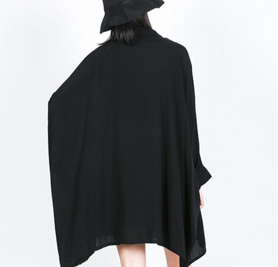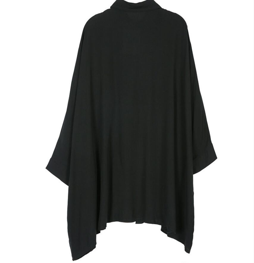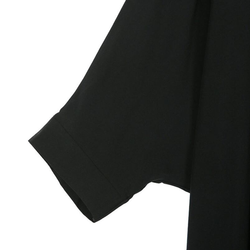 ゆったりとしたドルマンシルエットが、自然に体型をカバーしながら